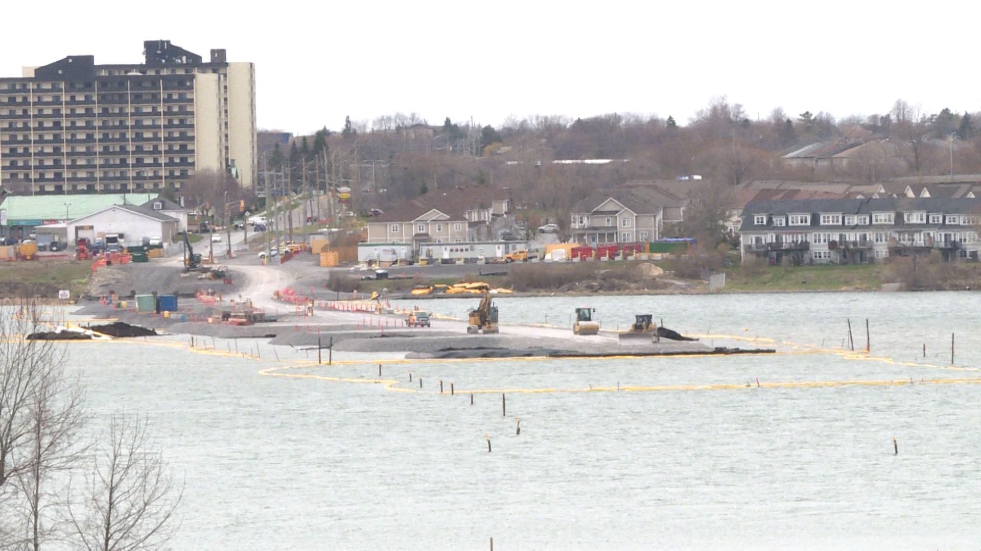 As far as the work that’s currently taking place, on Kingston’s west side there’s a temporary rock causeway making its way to the other side. Mark Van Buren is the city’s manager of large infrastructure projects.