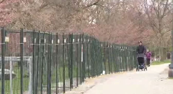 Fences have been installed around the Cherry Blossoms in Toronto’s Trinity Bellwoods in an effort to keep up with social distancing and deter people from coming to the park amid the coronavirus pandemic.