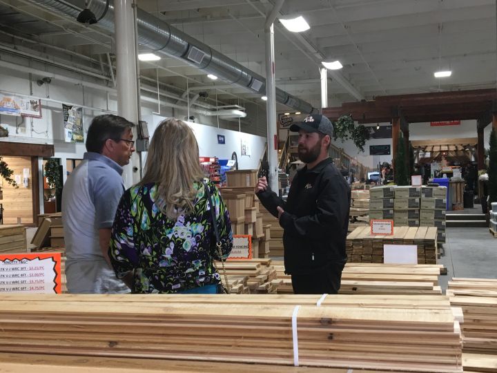 A couple of aisles over, Ross Rayment was looking for the right piece of piece of lumber for a small repair job near the roof of his house, after a woodpecker left a small hole.