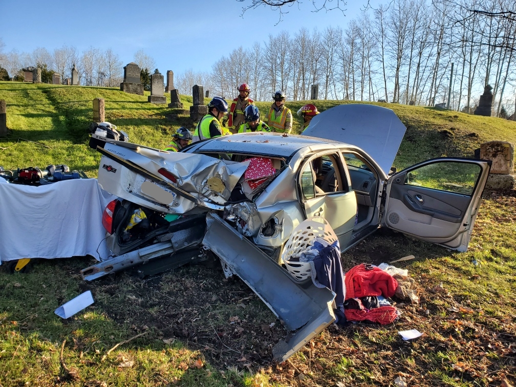 Officers located a damaged four-door sedan on the north side of County Road 2 within the perimeter of a cemetery. The lone occupant of the vehicle was taken to hospital with undisclosed injuries, OPP said.