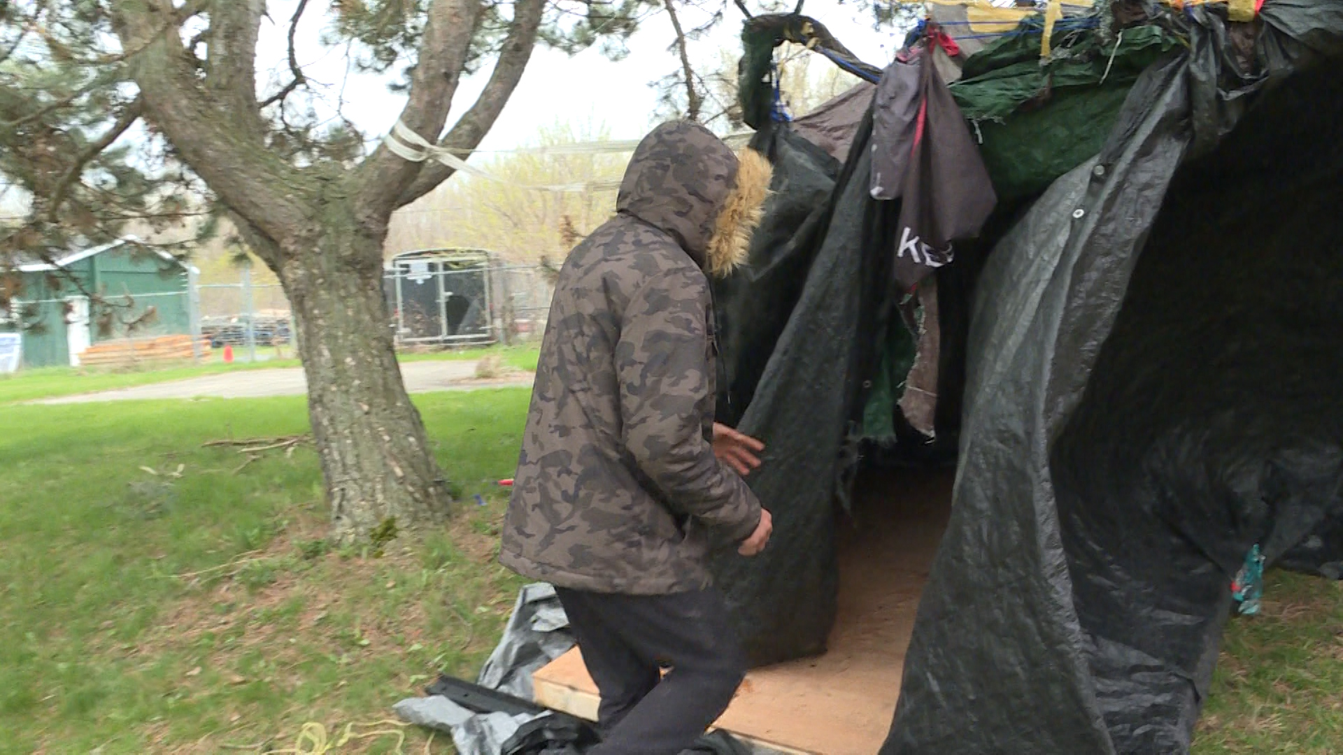 On Monday, Global News was given a tour by one of the residents who says the number of people has grown in recent weeks after shelters began enforcing strict social distancing guidelines.