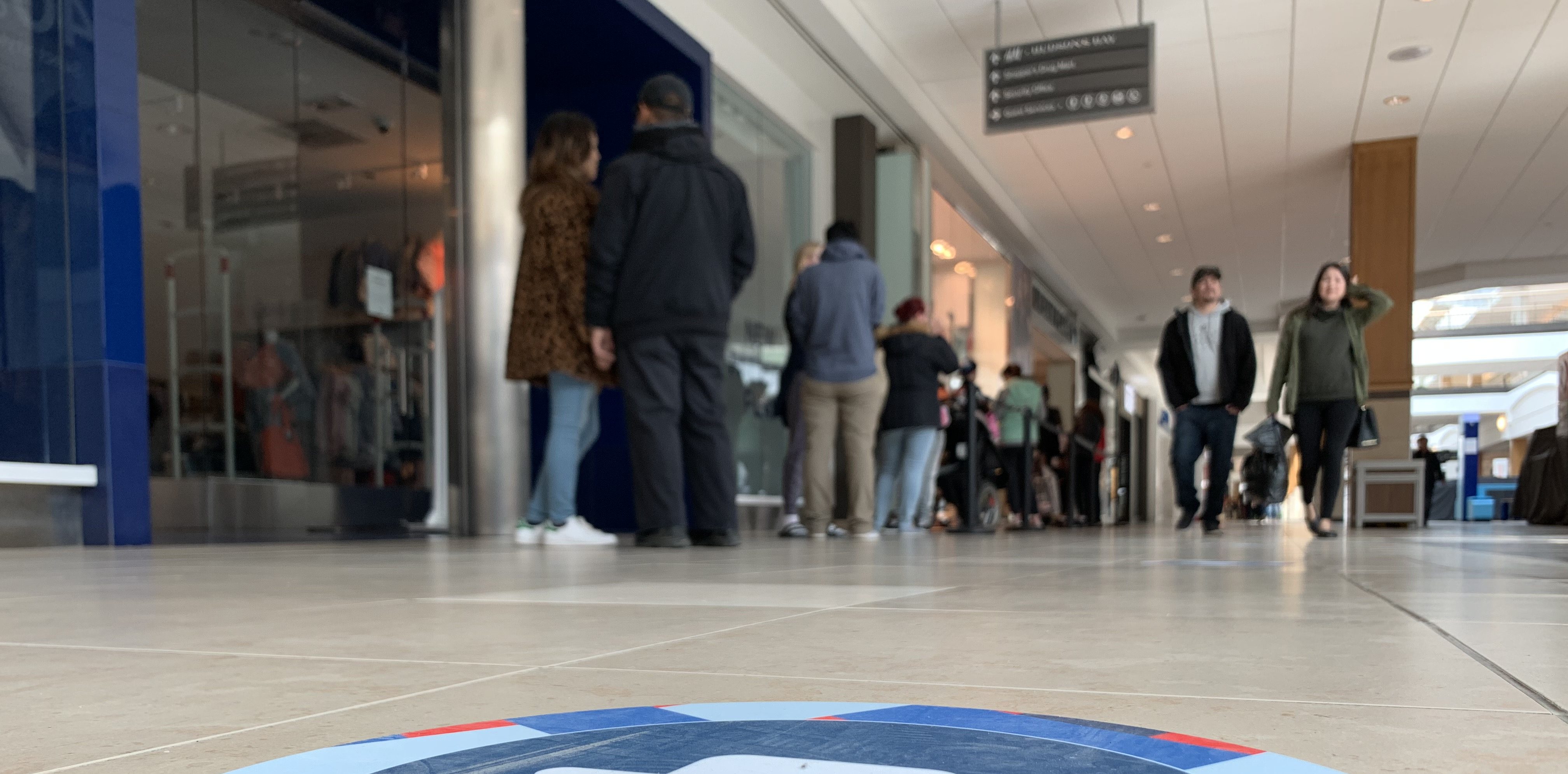 Shoppers must also follow arrows on the floor to get from one store to another.