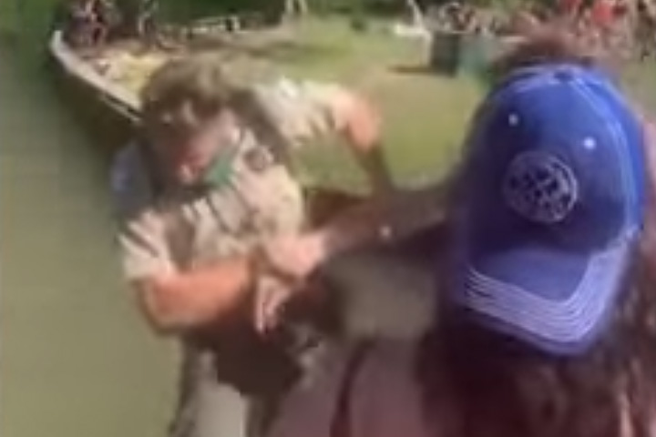 Stillwell was in the middle of telling the group to keep “six feet of distance” between themselves and others when a man came up and shoved him into the water. Stillwell managed to grab the man and pull him in as well, the video shows.