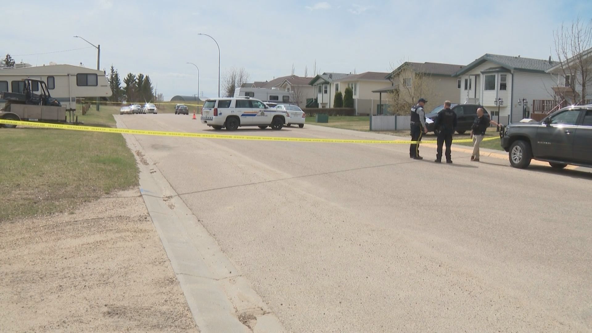 Several RCMP vehicles also remained at the scene in Blackfalds Wednesday afternoon, where officers had cordoned off the street in front of a home, as well as the alley behind the property.