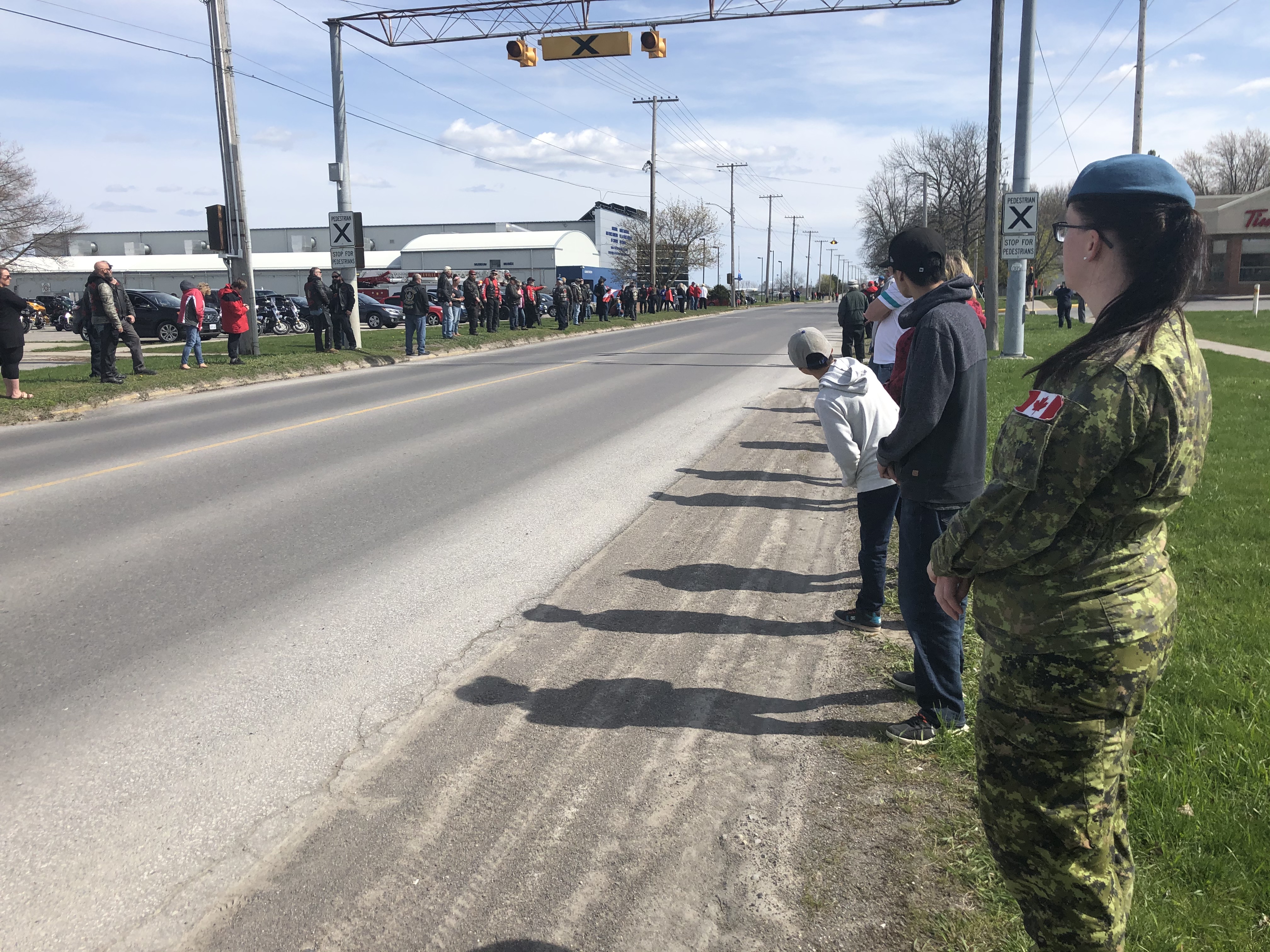 A repatriation ceremony was held at CFB Trenton to honour the five men and one woman who died when their Cyclone helicopter crashed into the ocean. Outside the chain-linked fences, men, women and children, many wearing red and white while respecting physical distancing rules, stood quietly as the procession drove-past.