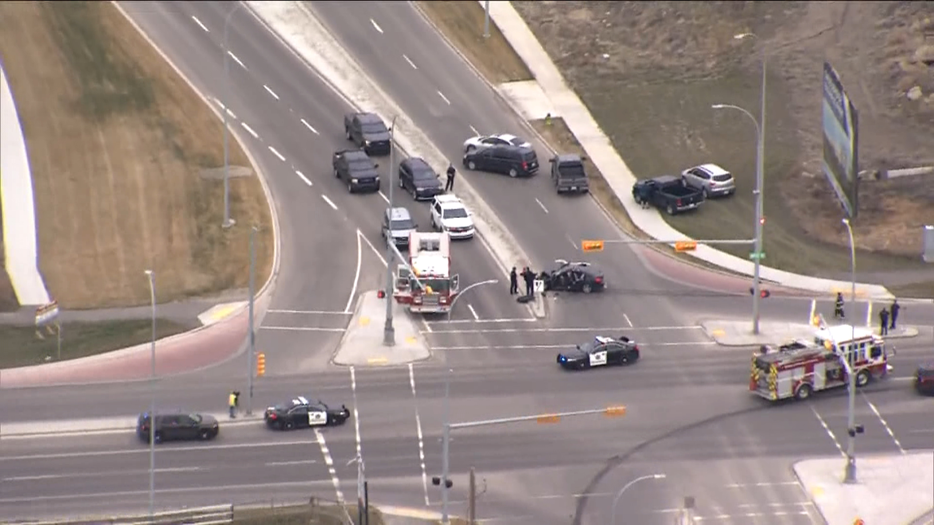 Four people were taken to hospital from the scene of a crash on Calgary’s Metis Trail on Thursday afternoon.