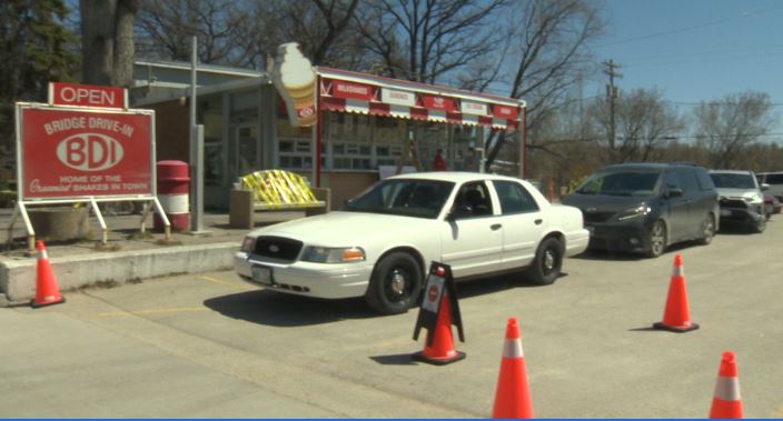 Winnipeg’s Bridge Drive-In opened up Friday and asked people to stay in their cars instead of lining up outside of their ice cream shop to limit the spread of COVID-19.