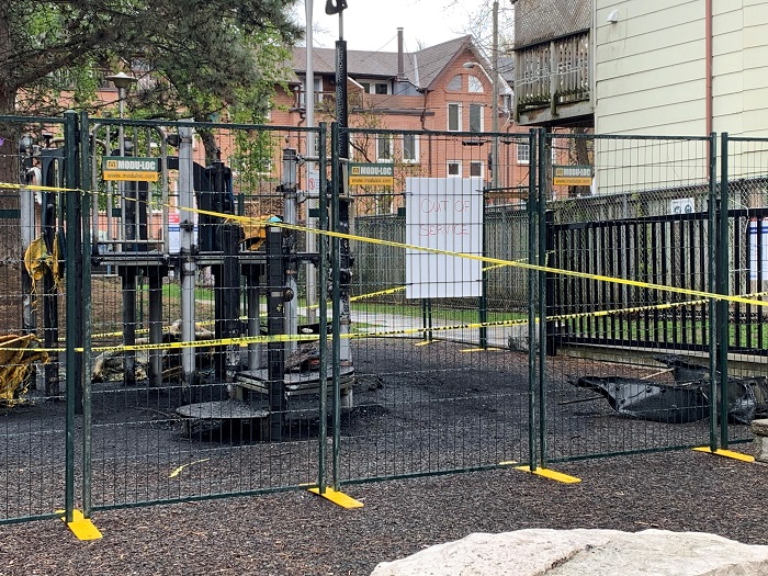 A small playground in east-end Toronto was completely destroyed after being set on fire for the second time in four years over the weekend.