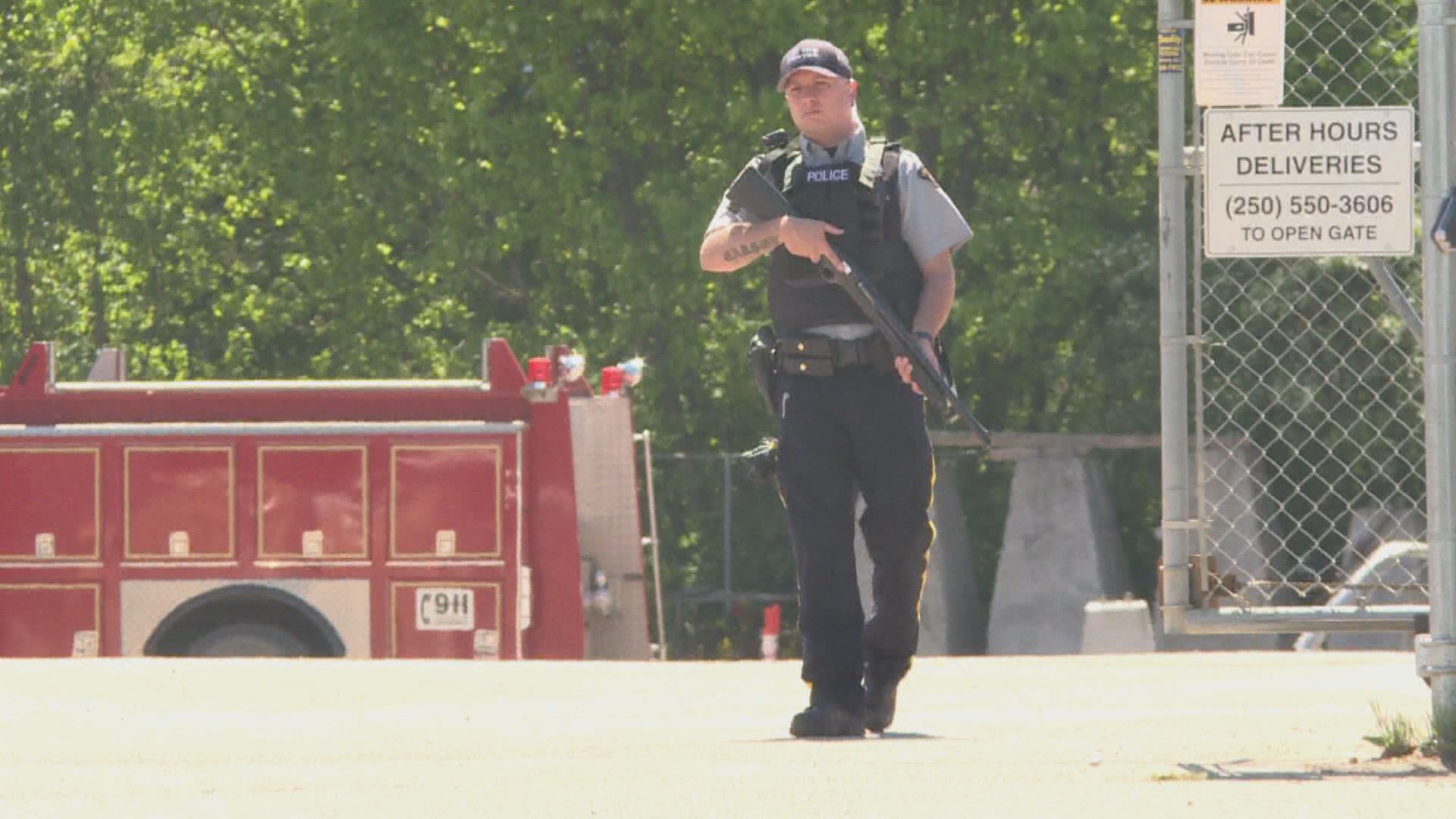 There was a heavy police presence at Vernon’s public works yard on Monday afternoon.