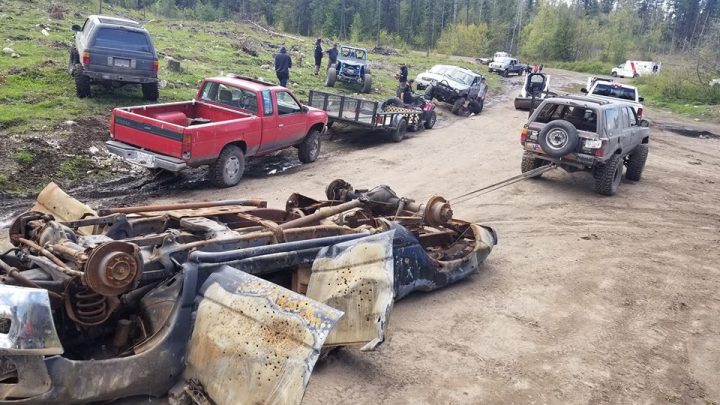 Kane Blake, founder of the Okanagan Forest Task Force, said 10 old, burnt up vehicles were removed from Postill Lake Road on Saturday, along with thousands of pounds of other garbage material.