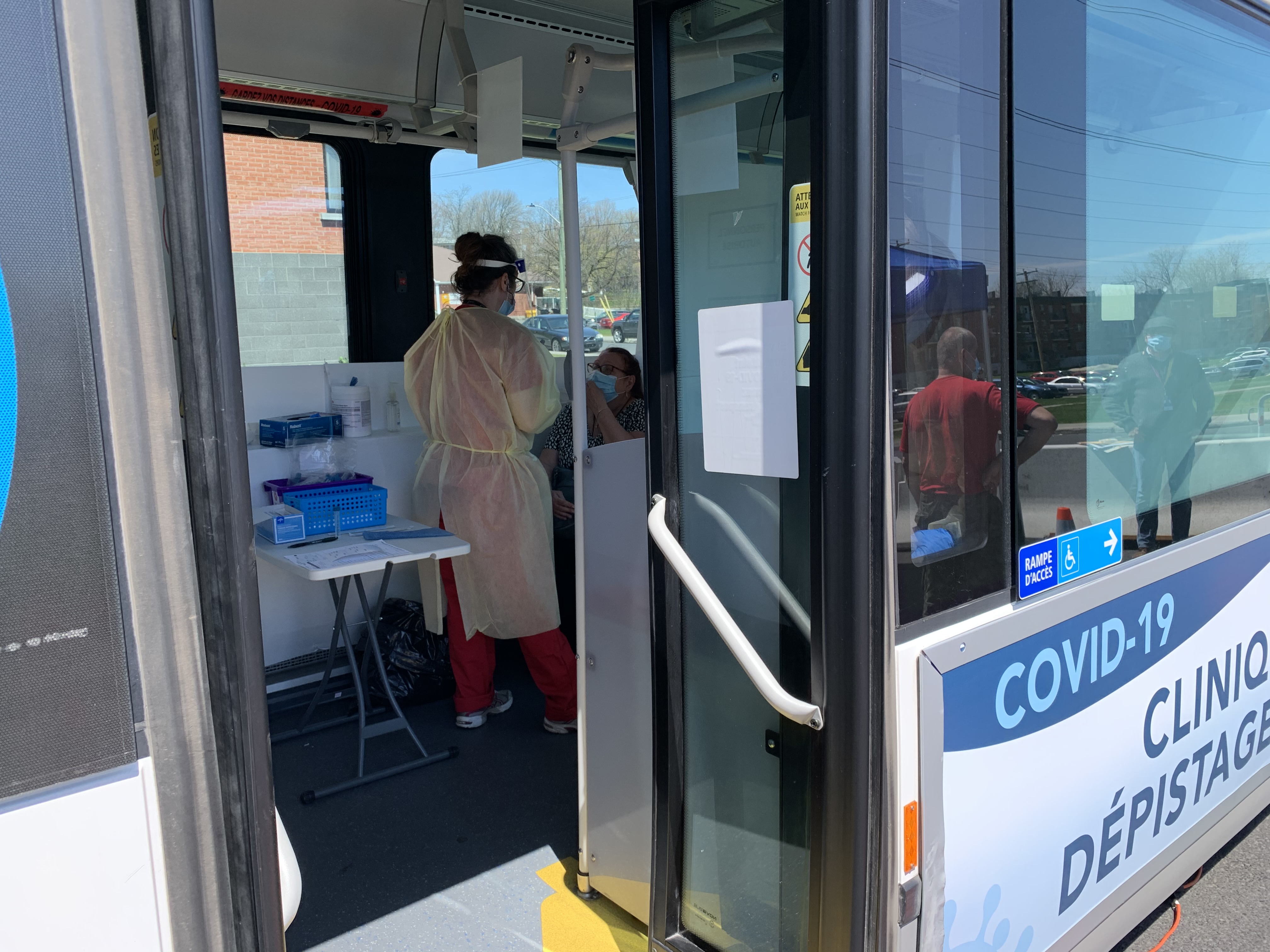 There was a steady stream of people coming to be tested for COVID-19 at the new mobile screen centre in Pierrefonds on Thursday.