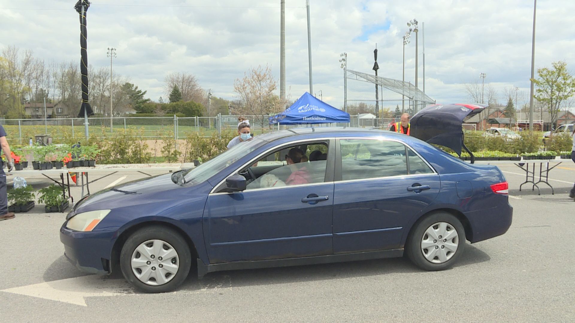 The borough has changed the way they distribute plants: residents arrive by car, park in front, show ID and then pop their trunk. Attendants take their orders and then fill their cars.