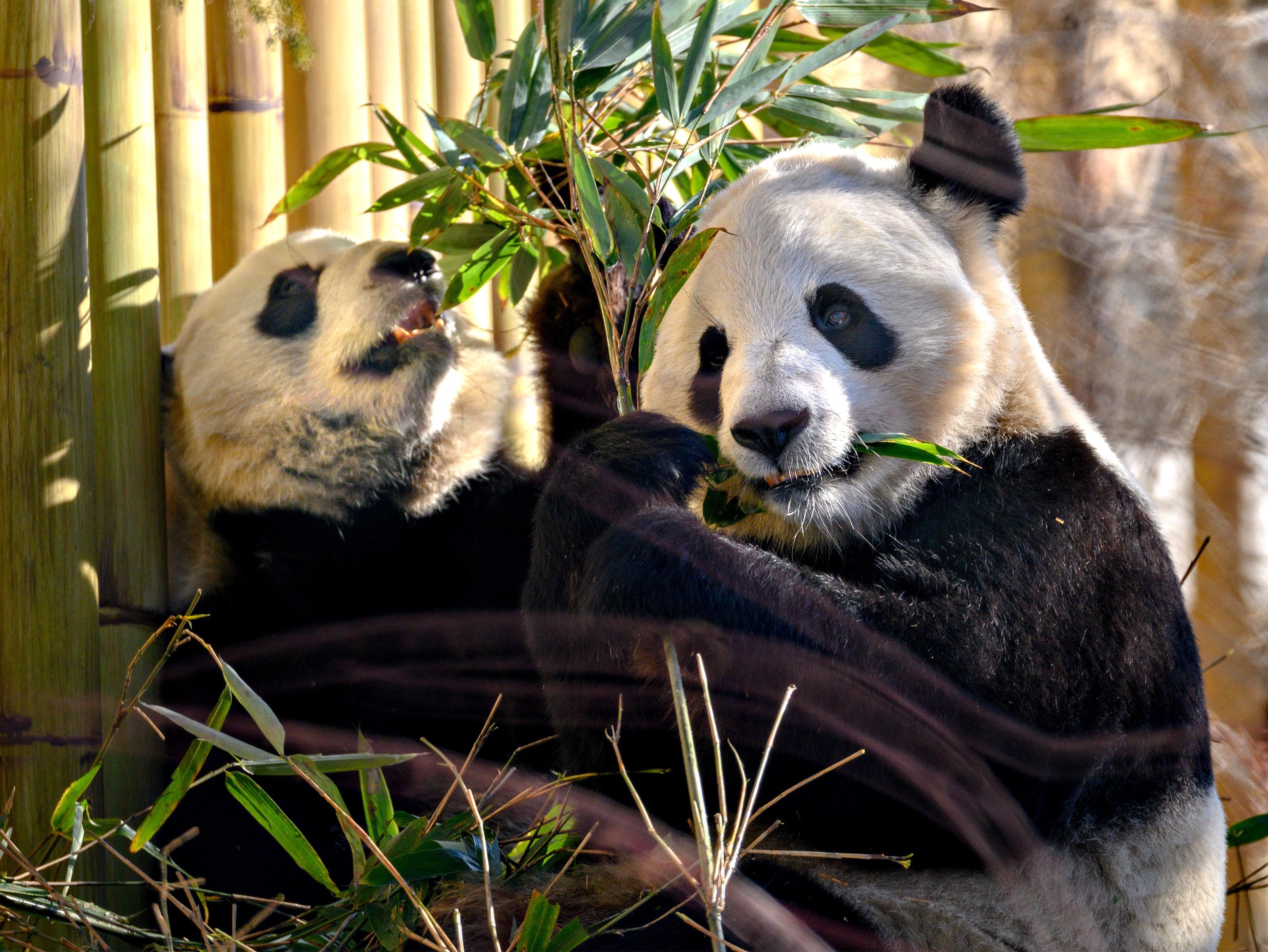 One giant panda eats about 38 kilograms of bamboo per day, according to the zoo.