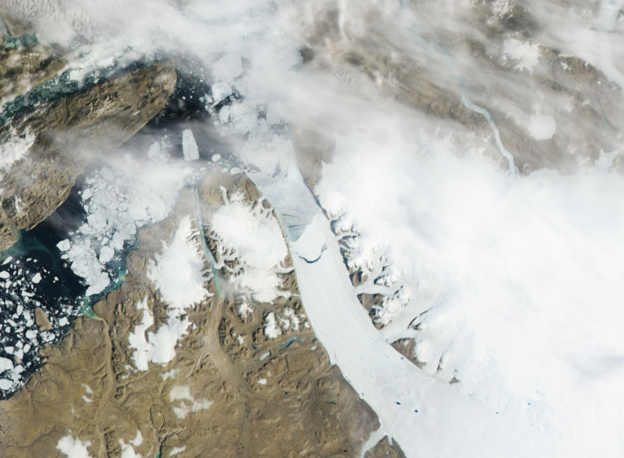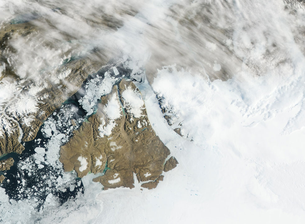 “There are still pieces of the Petermann calving event from 2010 that are still alive and kicking and they are trapped in the coastal ice along the Baffin Island coast…and there are also pieces of the 2012 trapped in the shallow waters along the Baffin Island coast and they may remain there for perhaps another year before they lose sufficient mass to float up and continue their journey.”