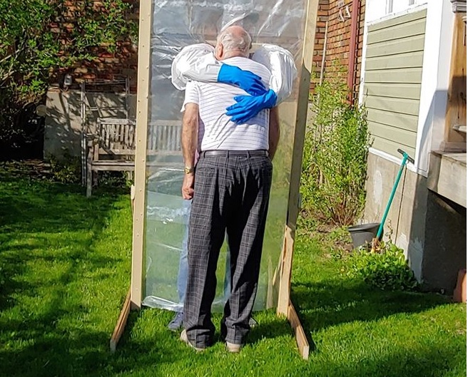 Montagano said got the idea online, but it was a desire to hug his parents — without putting them at risk of infection — that pushed him to get building.