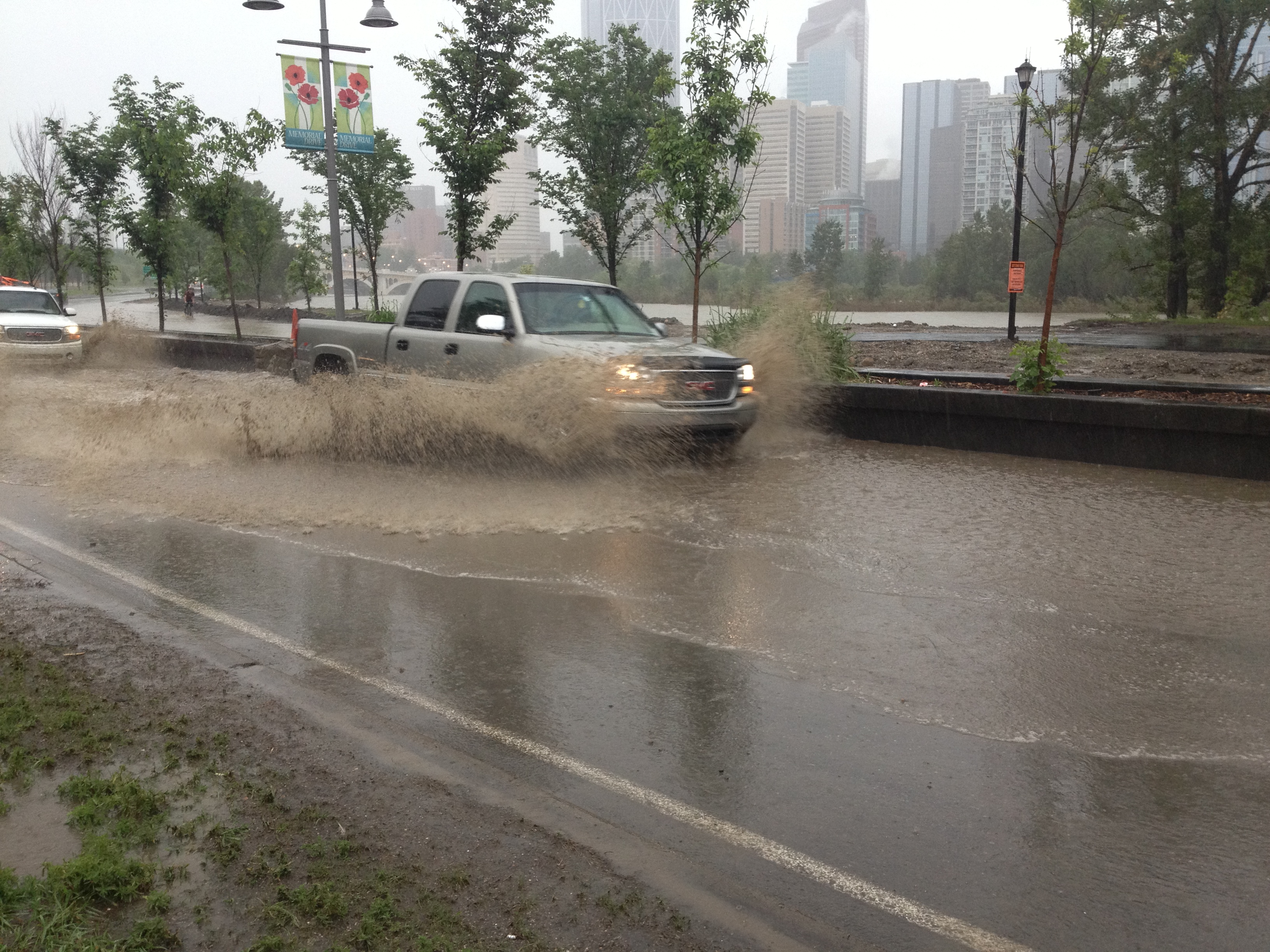 Calgarians are being urged to use caution around collections of water, and to not attempt to drive through the pools of water as the depth can be difficult to gauge.