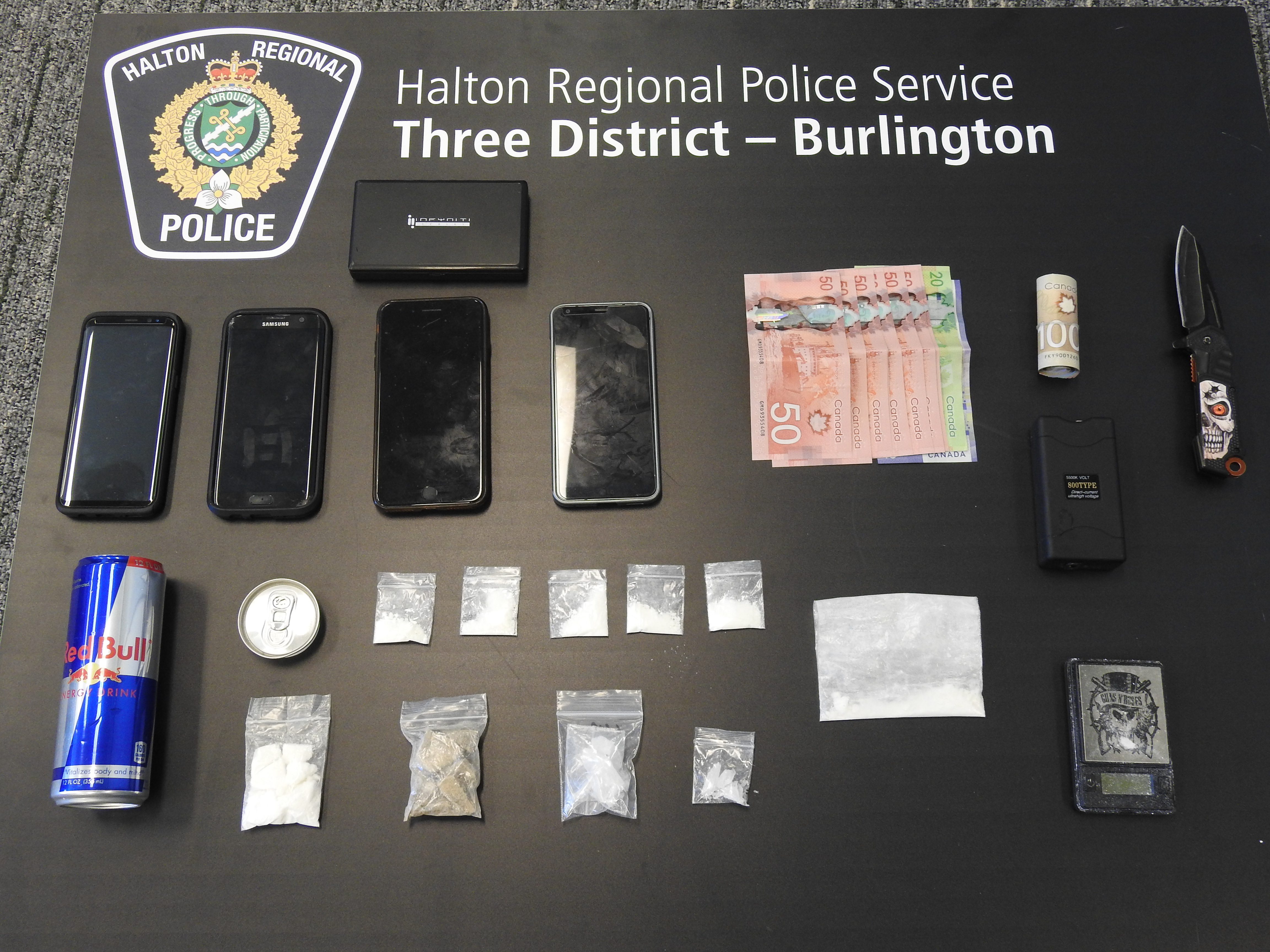 Officers also seized nearly $1,500 in cash, four cell phones, digital scales, a stun gun, a flick knife and an Ontario licence plate that was allegedly stolen.