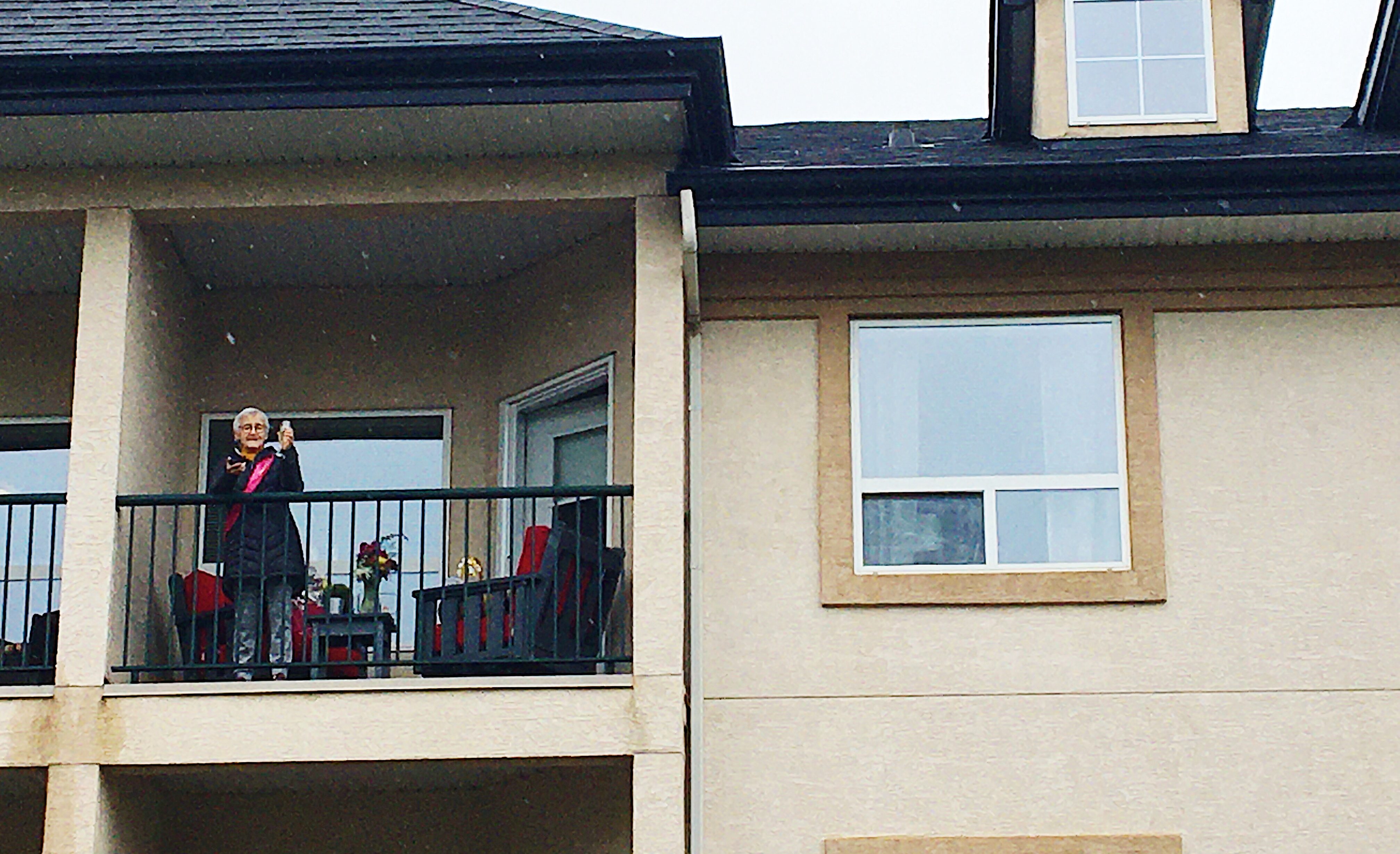 On Friday, her loved ones gathered two storeys below Dorothy’s balcony and showered her with love.