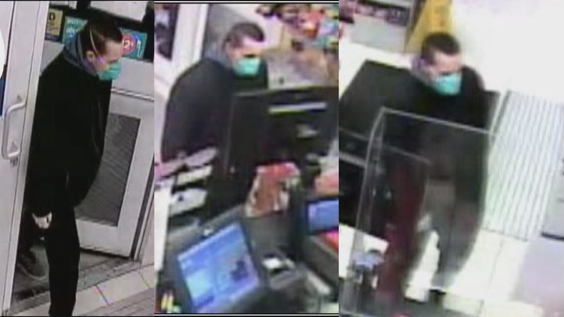 At the time of the alleged incident, police say he was wearing a black, hooded windbreaker jacket and a blue-green medical mask on his face.