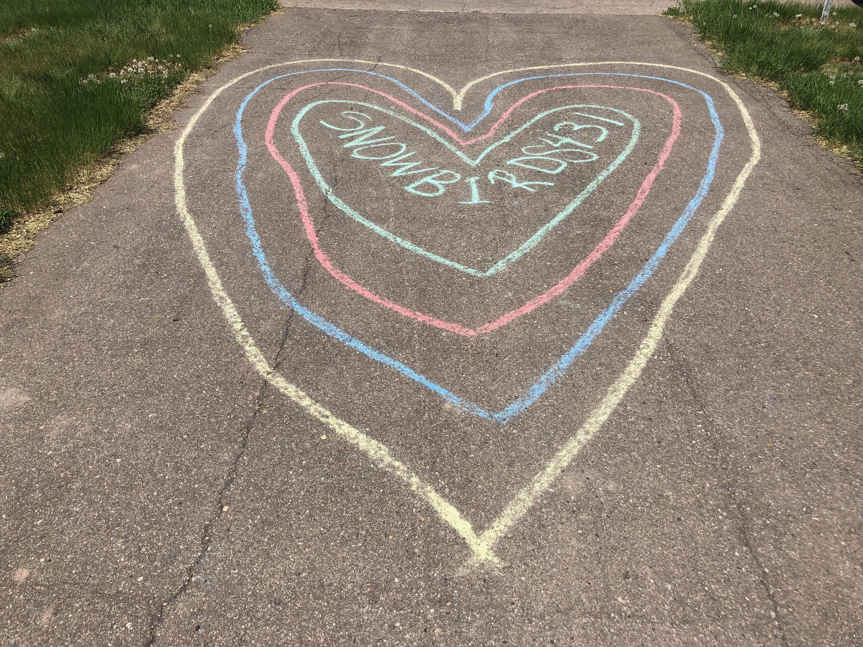 Community members drew chalk hearts and messages in the streets to welcome the team home.
