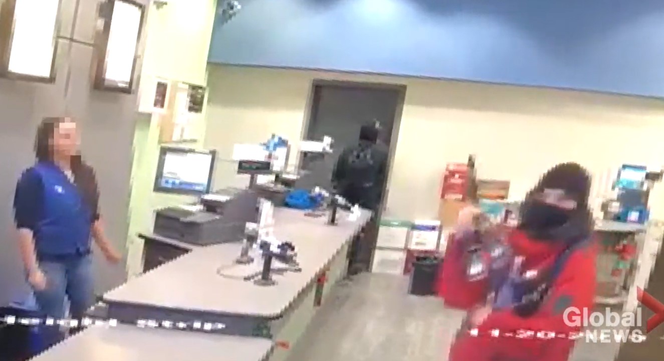 The video, which was obtained by Global News, shows teen boys pushing and fighting with security and liquor mart staff at the store. At one point, one of the teens punches a female clerk in the face in what appears to be an unprovoked attack.