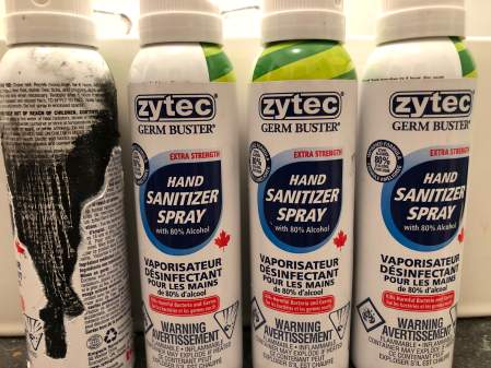That statement assures the public that the contents of these re-purposed bottles are “100% Made in Canada zytec Germ Buster hand sanitizer,” and the packaging labels meet all Health Canada requirements for hand sanitizer products.