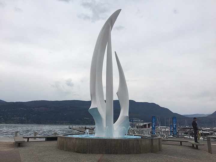 The Sails sculpture in downtown Kelowna and part of Kelowna General Hospital will be awash in purple lights on Monday.