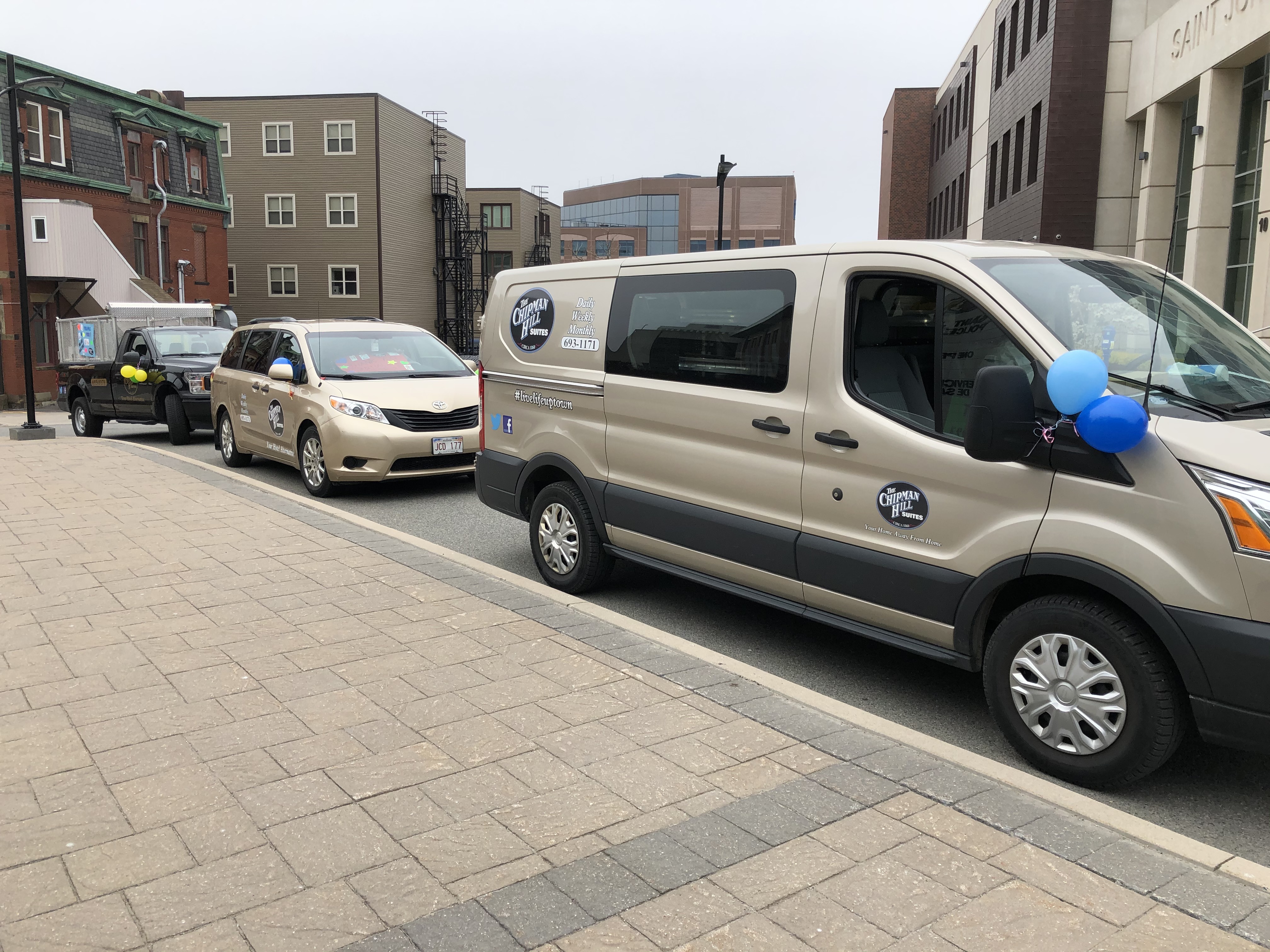 Starting at Saint John Police headquarters, Chipman Hill Suites took a three-vehicle convoy all over the city.