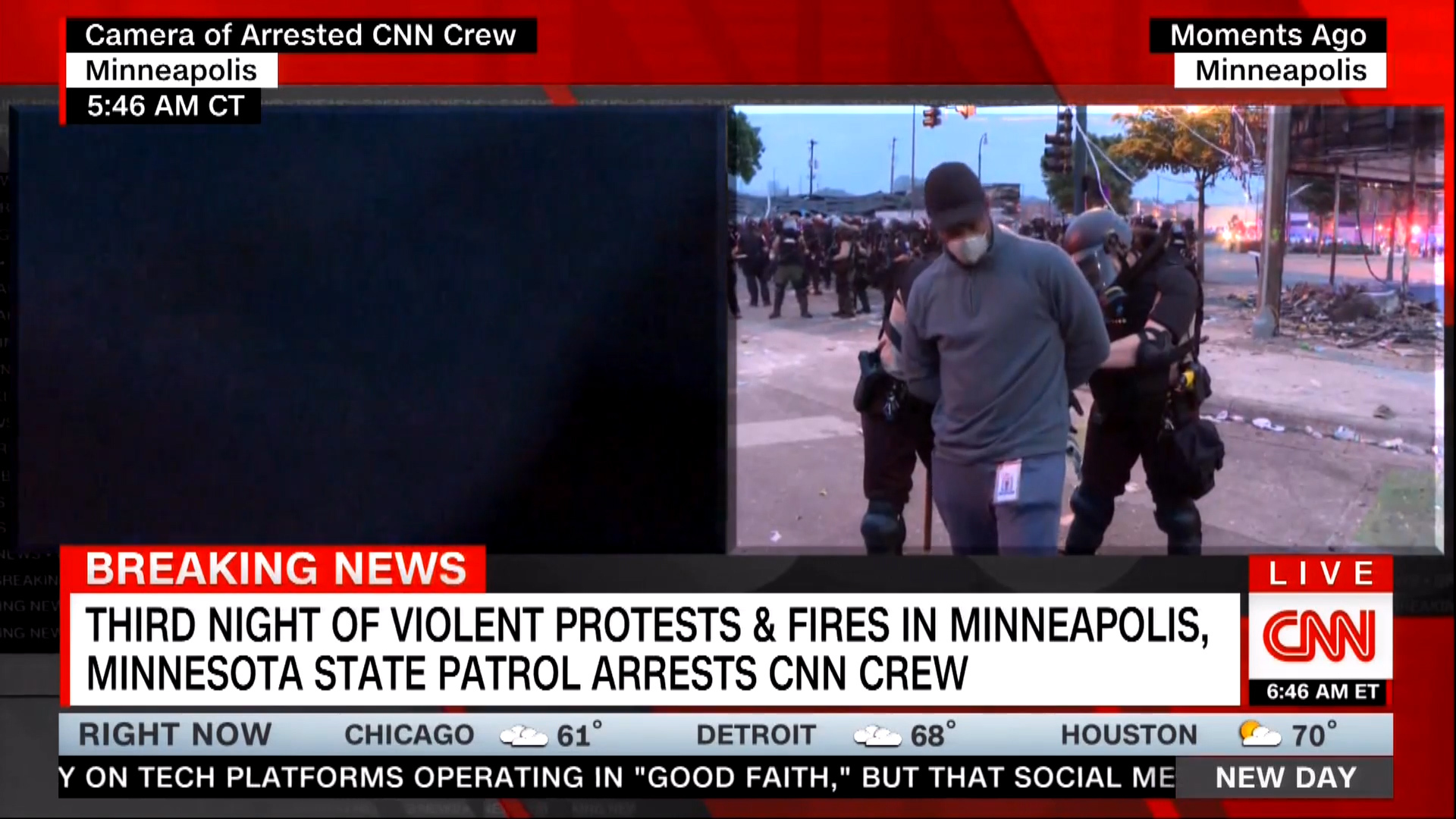 “A CNN reporter and his production team were arrested this morning in Minneapolis for doing their jobs, despite identifying themselves – a clear violation of their First Amendment rights. The authorities in Minnesota, including the governor, must release the three CNN employees immediately,” CNN wrote on Twitter before the crew were released.