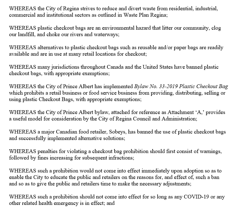 The city says plastics, including checkout bags, make up one per cent of all waste at Regina landfills.