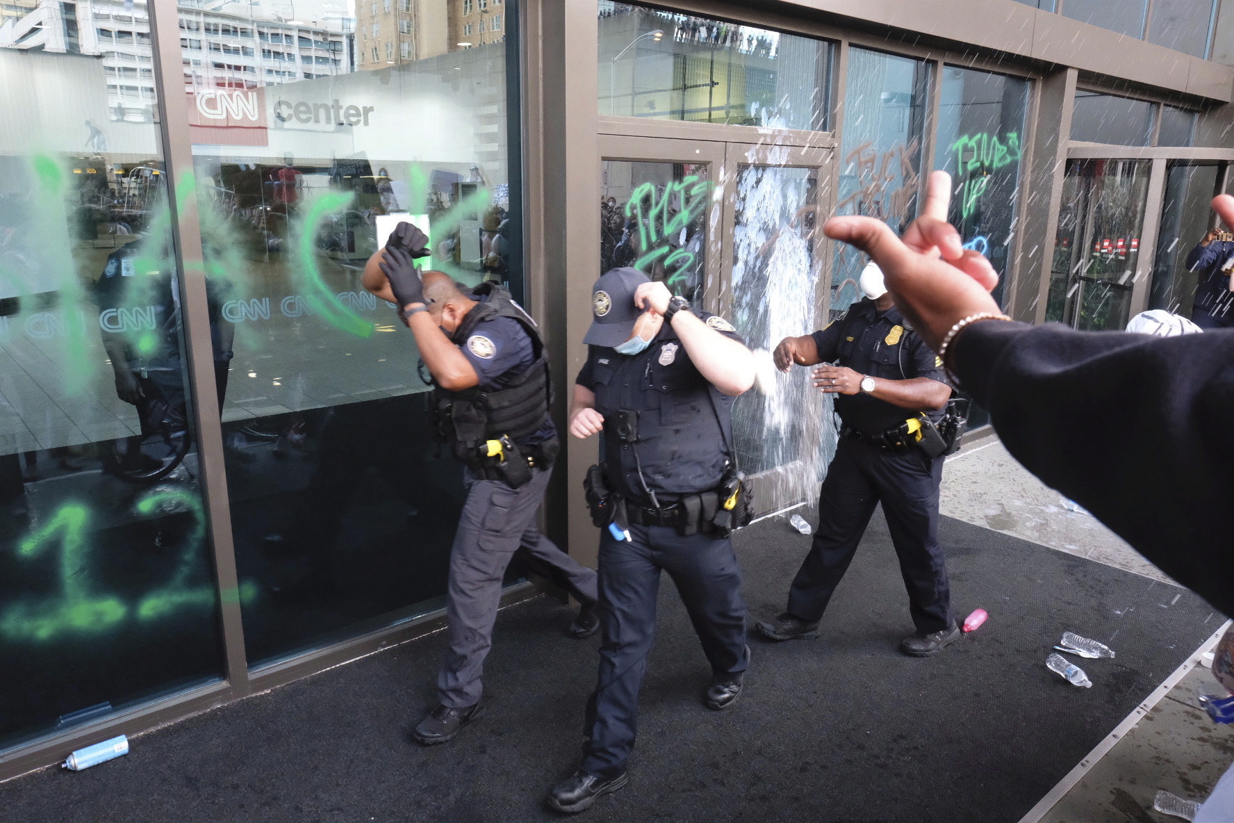 Hundreds of protesters were confronting police outside CNN’s downtown headquarters late Friday.