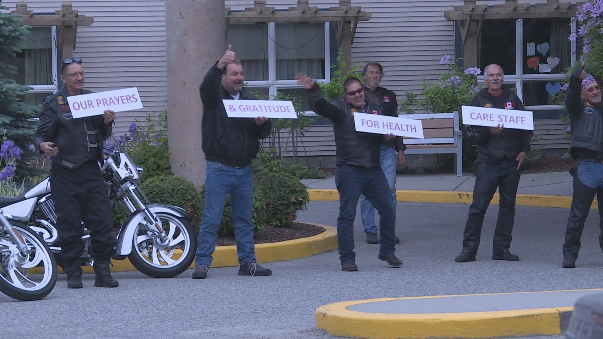 The bikers were out making noise to say thank you to the front-line workers and sending love to those on the other side of the windows at Haven Hill Retirement home in Penticton on May 30, one of four stops they had planned for the day.