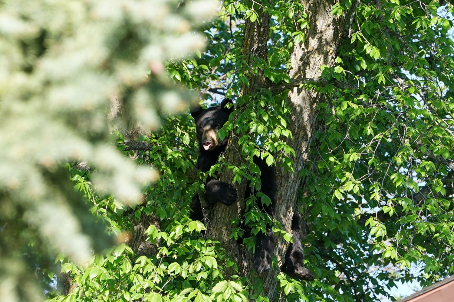 Police say the bear went up and down a number of trees, before lodging itself in one particular specimen for hours in the afternoon.
