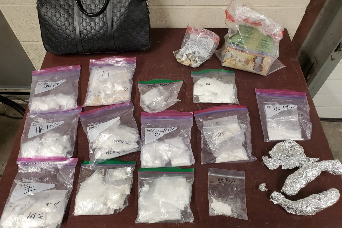 Police say 650 grams of suspected cocaine, 110 grams of suspected fentanyl and around $31,000 in cash were seized during the stop.