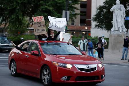 Late Monday afternoon, a huge group stretching several city blocks marched peacefully from downtown Louisville to the spot where McAtee was shot. Some motorists honked horns and raised fists in solidarity.