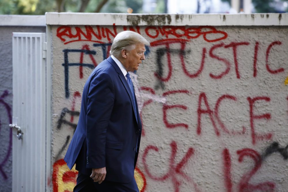 The video also failed to show the area around the White House, which has been scrawled with graffiti messages such as “Black Lives Matter” and “F— Trump” over several days of protests.