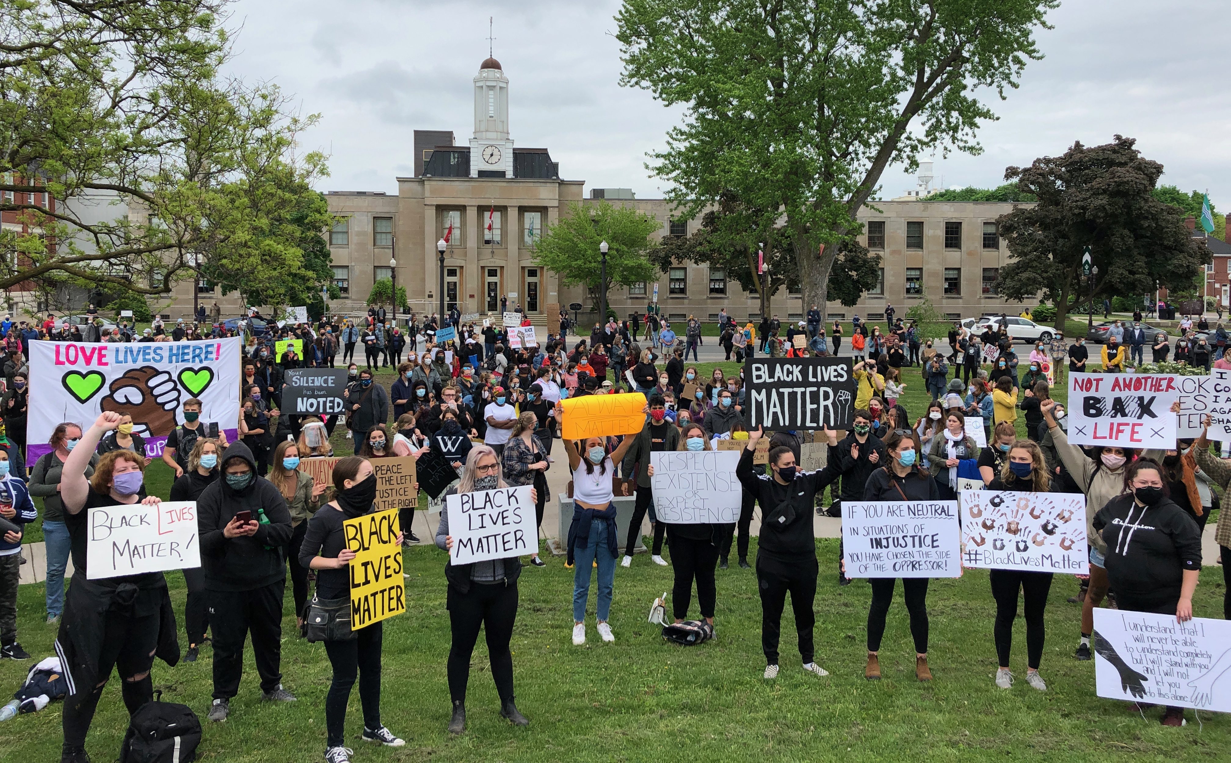 Several hundred people gathered in downtown Peterborough, Ont., Tuesday for a Black Lives Matter Rally to protest the death of American George Floyd.