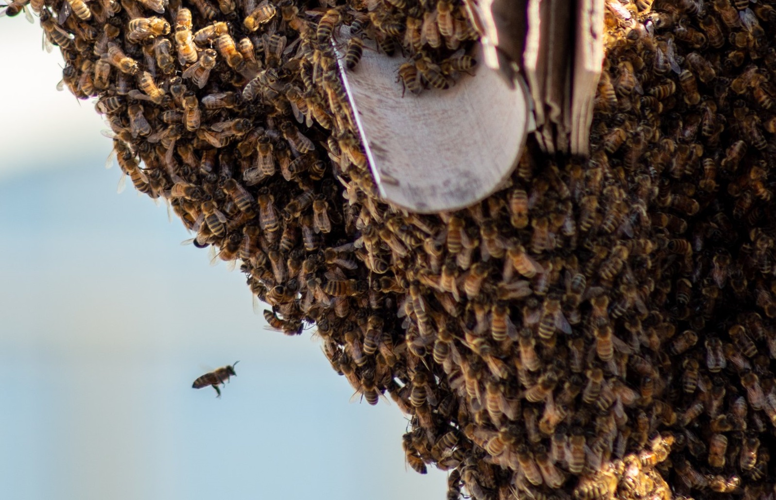 The insects appeared to make a temporary stop with their queen while on a journey to find a new place to call home.
