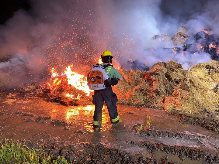 Clearview, Ont., fire crews battled a large straw bale fire northwest of Stayner during the early morning hours of Wednesday.