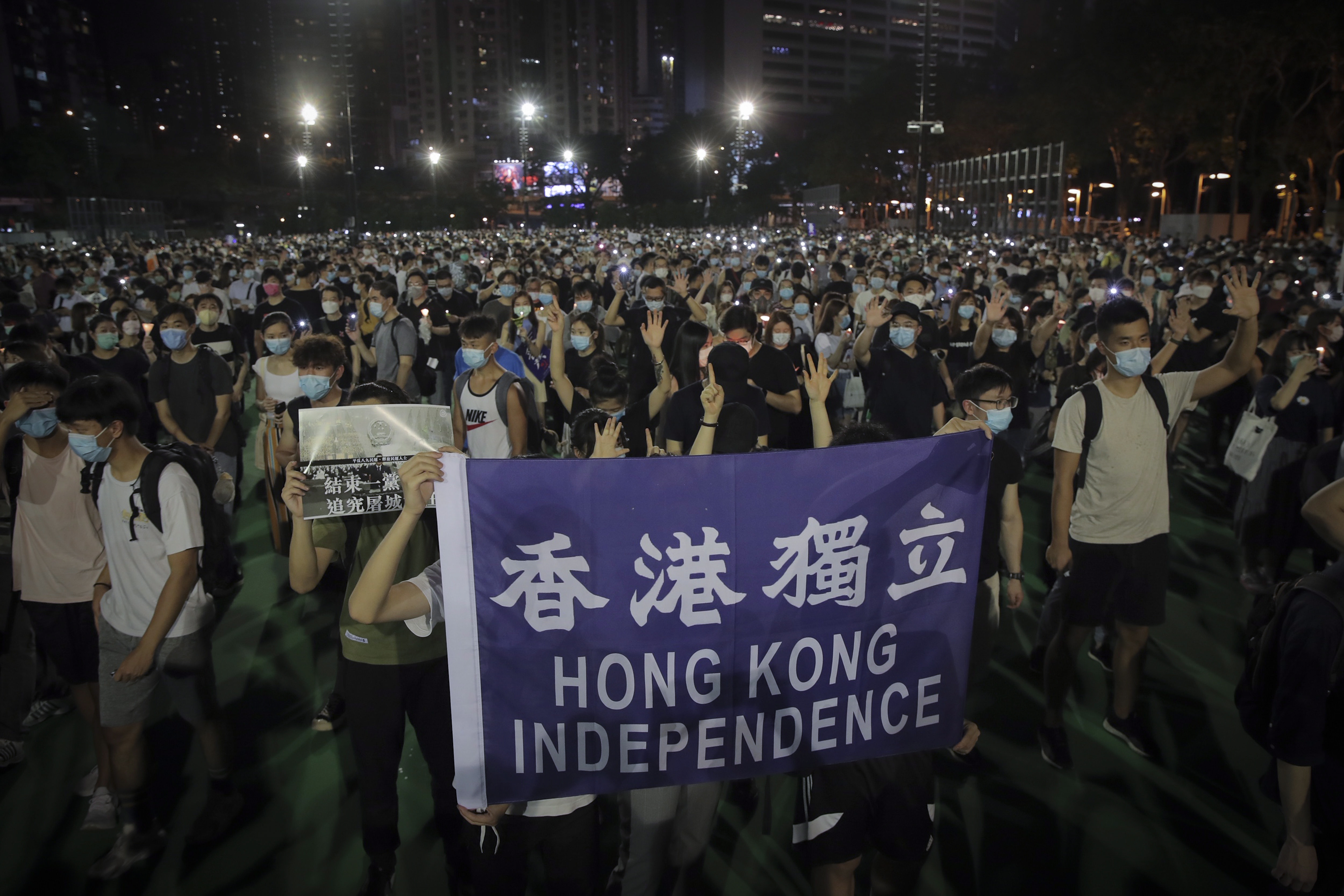Despite the ban on the vigil, crowds poured into Victoria Park to light candles and observe a minute of silence at 8:09 p.m. (1209 GMT, 8:09 a.m. EDT). Many chanted “Democracy now” and also “Stand for freedom, stand with Hong Kong.”