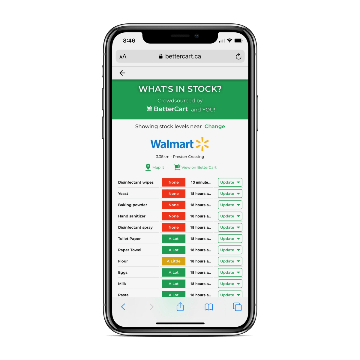 “After people shop, they can simply update it with just a couple clicks, then can update the product stock for their area and help out their community and help each other people find items they need,” he said.