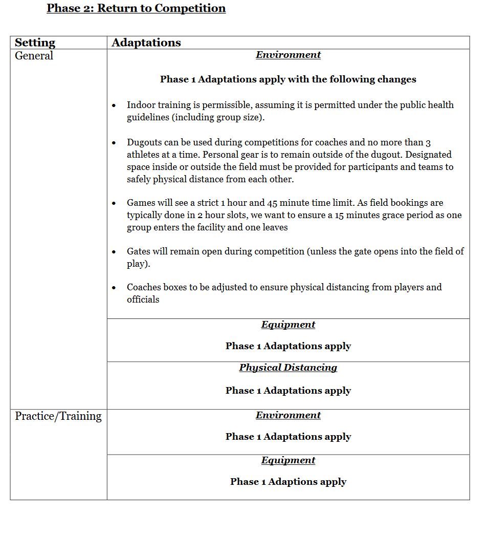 “We weren’t aware of organized sport being approved for groups of 10 until after it was announced,” he said. “We wanted to make sure we got a message out quick that (the announcement) doesn’t necessarily mean our associations are ready to mobilize just yet, and that our specific plan for the sport is available.