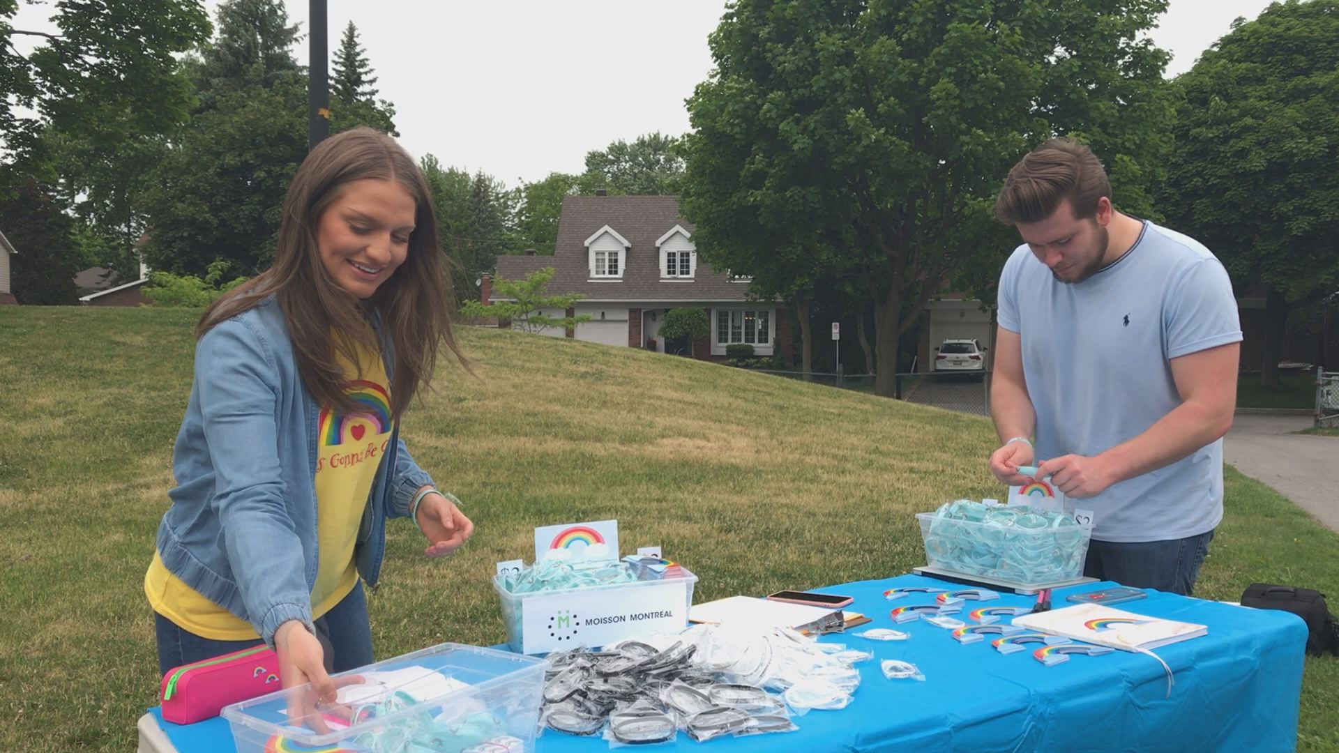 They’re selling rainbow bracelets, and stickers, that you can put almost anywhere, with half the proceeds going to Moisson Montreal.