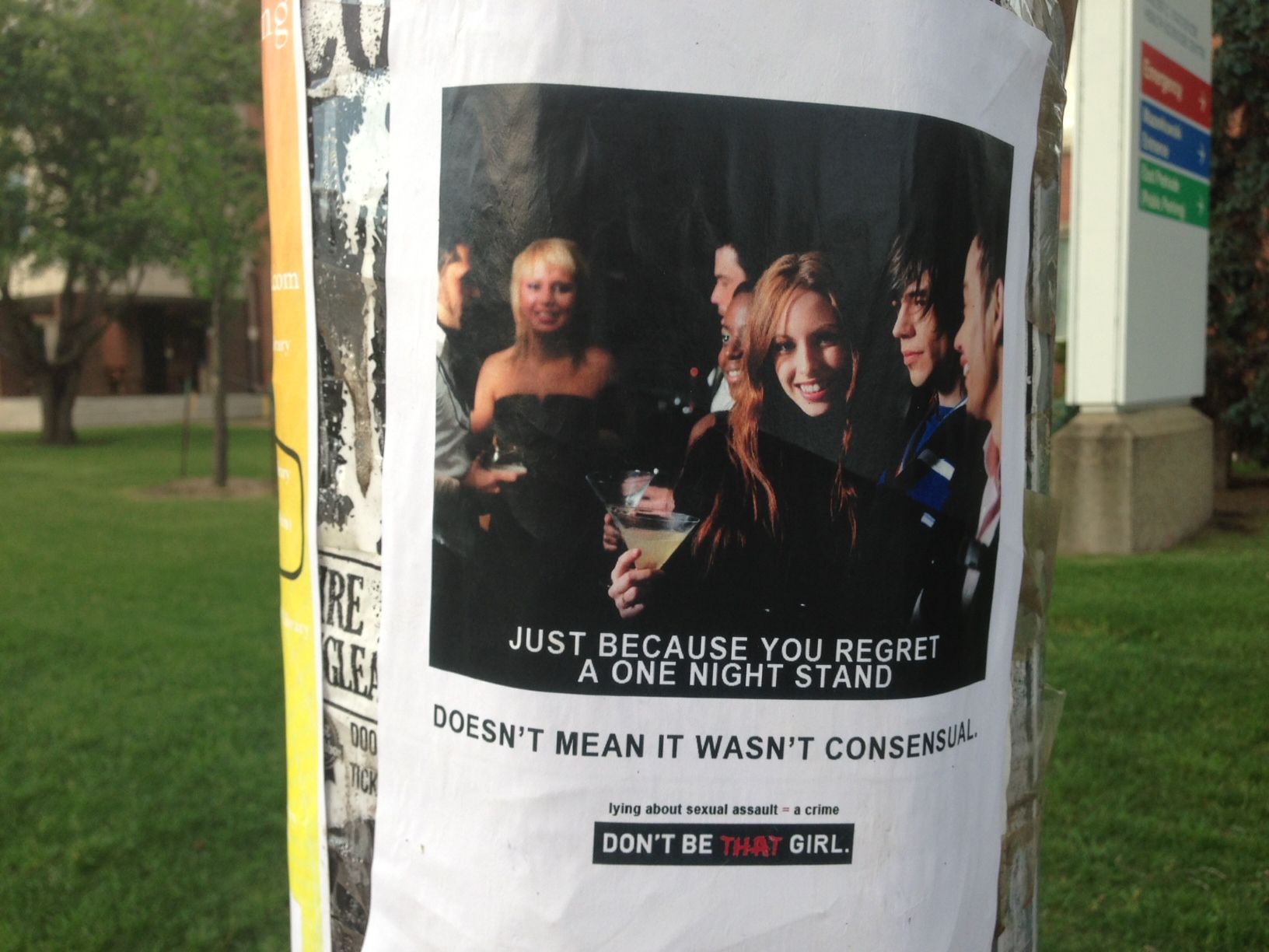 In Edmonton, many of the “Don’t be that girl” posters that had been put up around the city’s downtown and University area were being torn down on Tuesday.