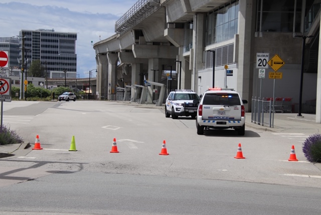 Police say the scene has since been cleared, and Canada Line and bus service have resumed.