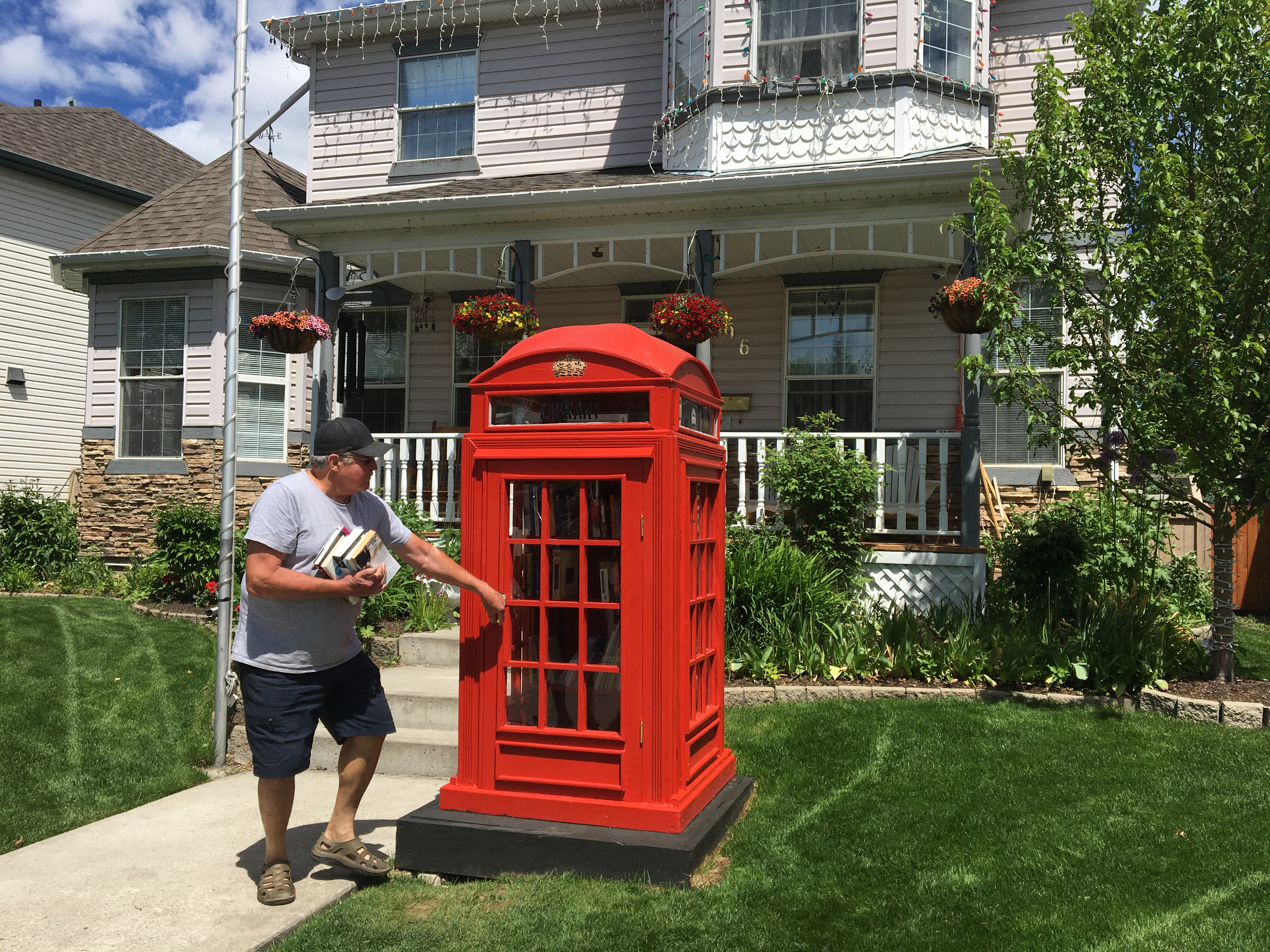 The 72-year-old spent about a month in his basement crafting a creation for his front lawn. The British telephone booth replaces his old little library.
