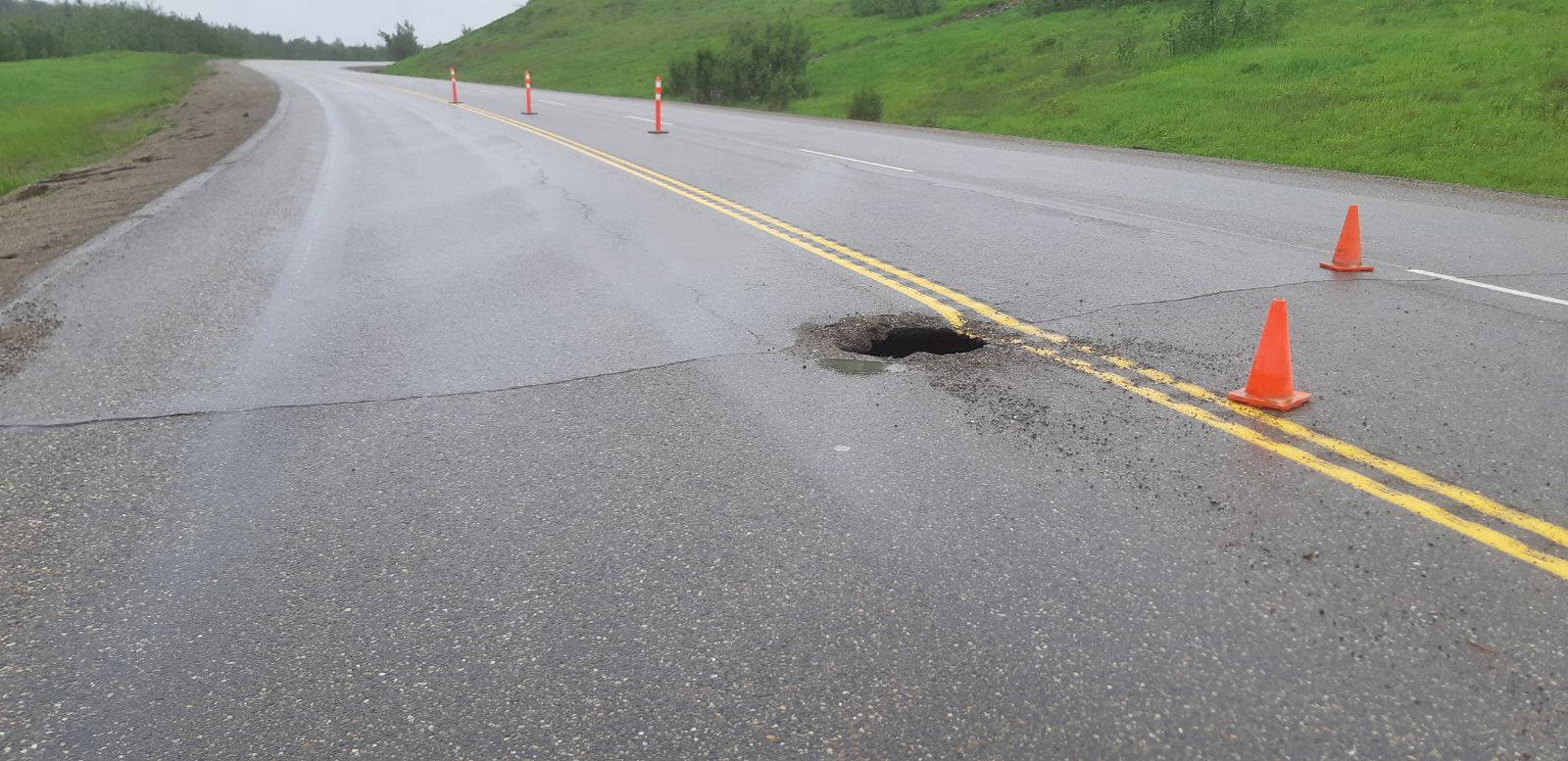 Nineteen kilometres north of Dawson Creek, Sweetwater Road remains shut down and impassable after a major washout. B.C.’s Ministry of Transportation says the site is being assessed by engineering staff and the maintenance contractor and repairs will begin when water levels recede.