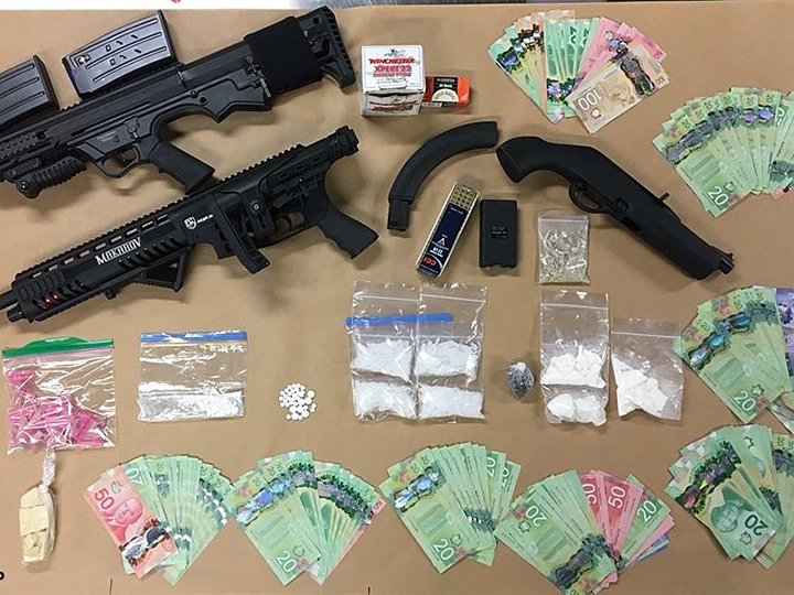 Money, guns, a travel trailer and a luxury vehicle were among the items seized during two drug busts this week, Kelowna RCMP announced on Wednesday.