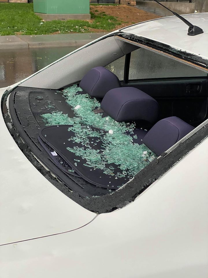Car windows were smashed and hoods were dented. Some vehicles were caught in the huge pools of water, and ended up submerged.