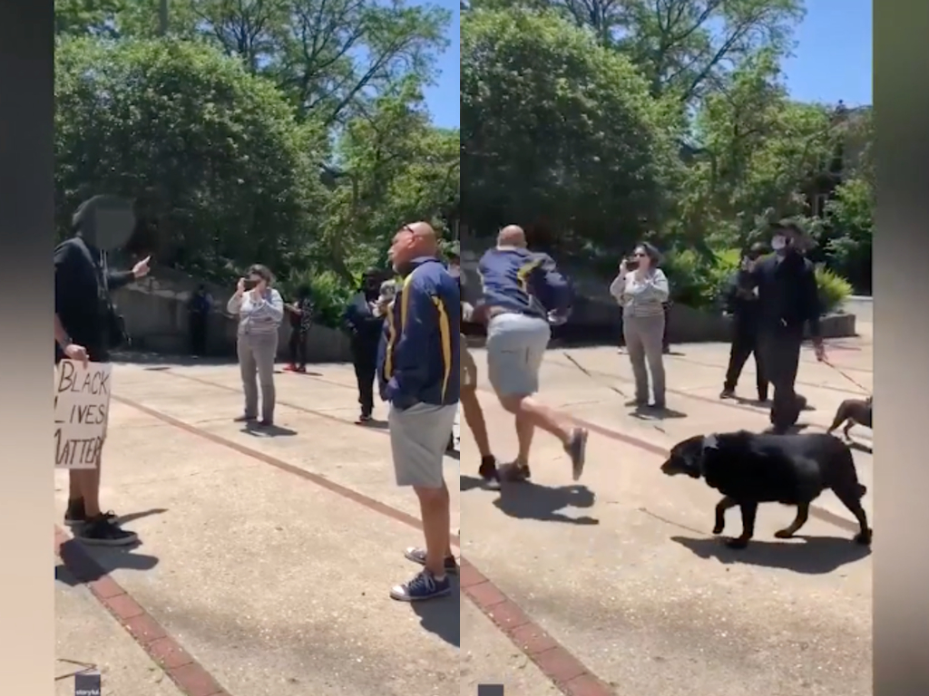 A former judge threw a punch at an anti-racism protester as they stood next to a defaced Christopher Columbus statue in Chicago last week.